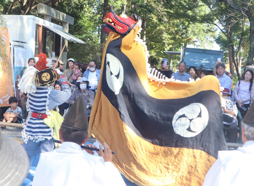 2頭が登場する都波岐奈加等神社の中戸流。大人の舞に加え、披露された子ども獅子