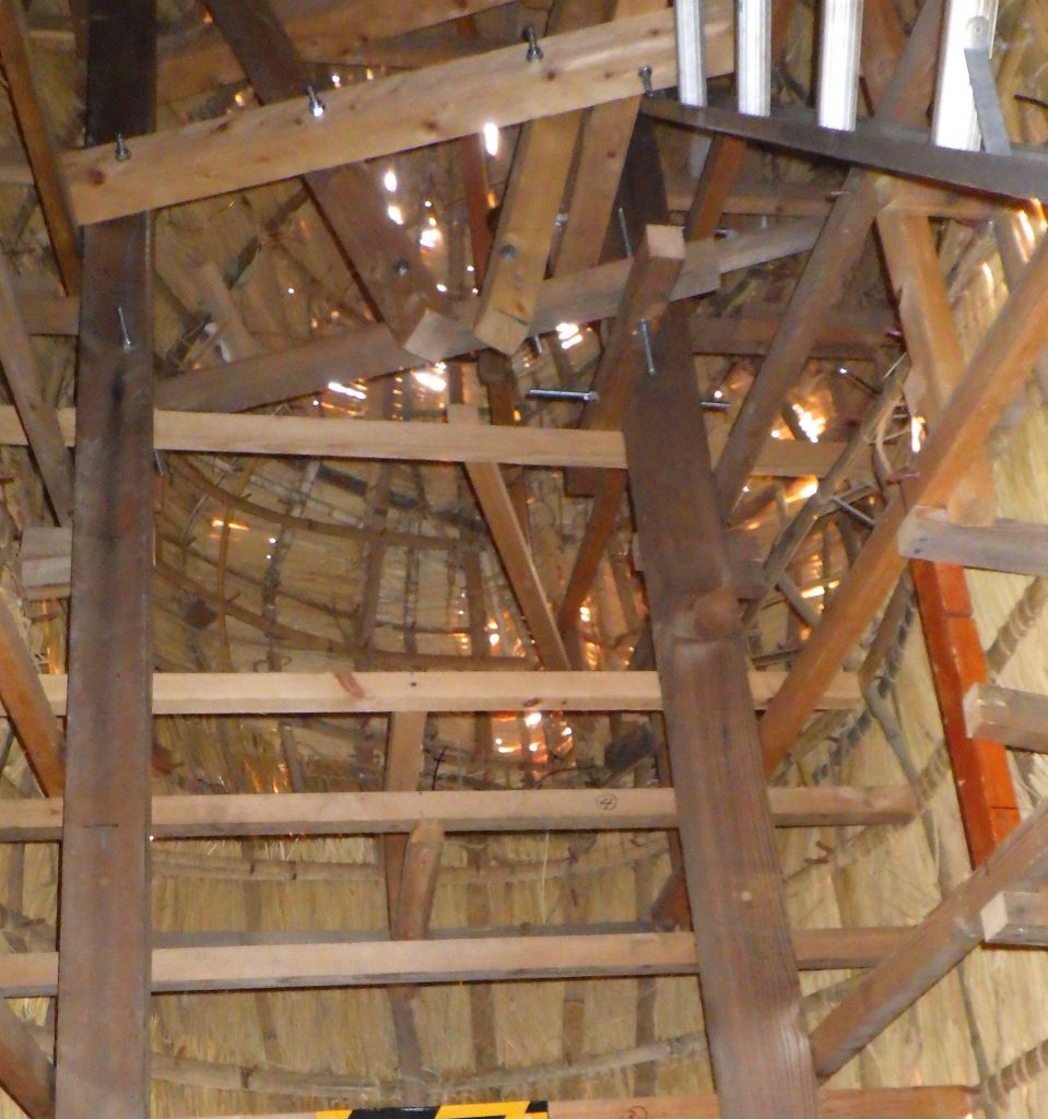 農村のシンボルにしようと続ける事業。現在では、入手するのが難しい大量の稲わらは、協議会などが米作りをしている田んぼから調達した。来春に解体され、稲わらは畑の農作物の敷きわらとしてリサイクルされ、土に戻される。(酒井直樹)