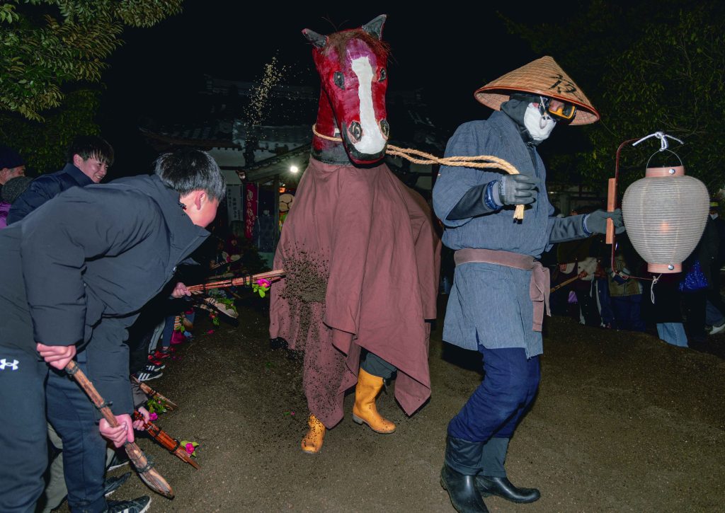 馬に砂を浴びせ豊作願う 早春の奇祭「馬の砂かけ」 三重県鈴鹿市甲斐町