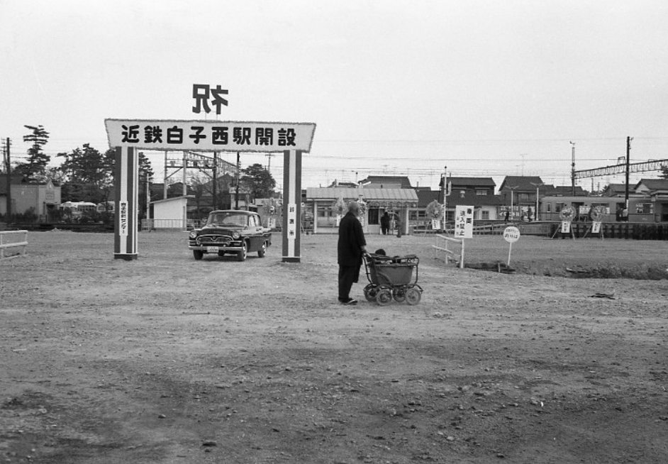 【近鉄白子駅の西口ができた当時のモノクロ写真。「みんなの郷土資料室デジタルアーカイブ」から=1964(昭和39)年】
