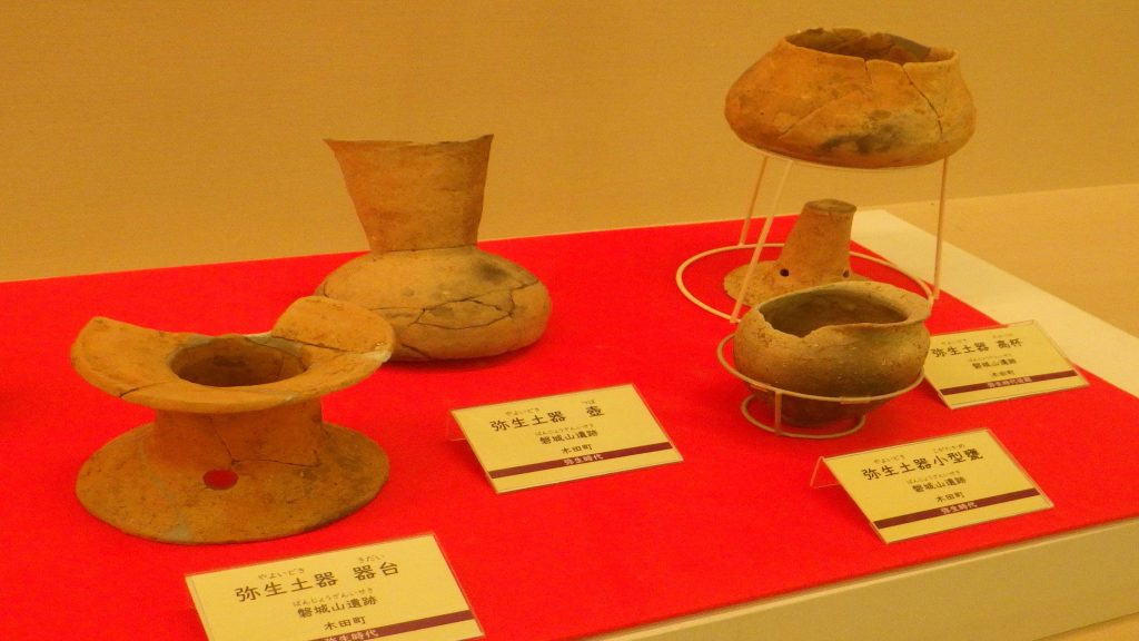 【磐城山遺跡から出土したつぼなどの生活用品。考古博物館での速報展で展示されている=鈴鹿市国分町の考古博物館で】