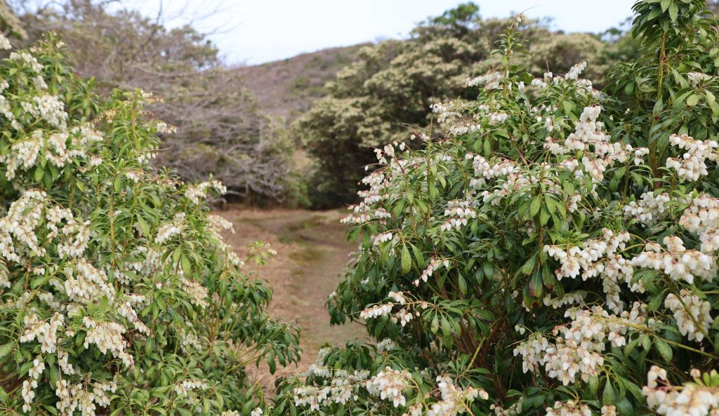 三重県鈴鹿市にある入道ケ岳(906㍍)の山頂付近で12日、県の天然記念物に指定されているアセビの群落が満開となった。市内からは、ふもとの椿大神社(つばきおおかみやしろ)を経由して尾根や谷に沿って登る計3ルートがあり、純白の花を付けた大群落は数時間かけて歩き、ようやく見ることができる。登山道を覆ってトンネルのようになった場所もある。