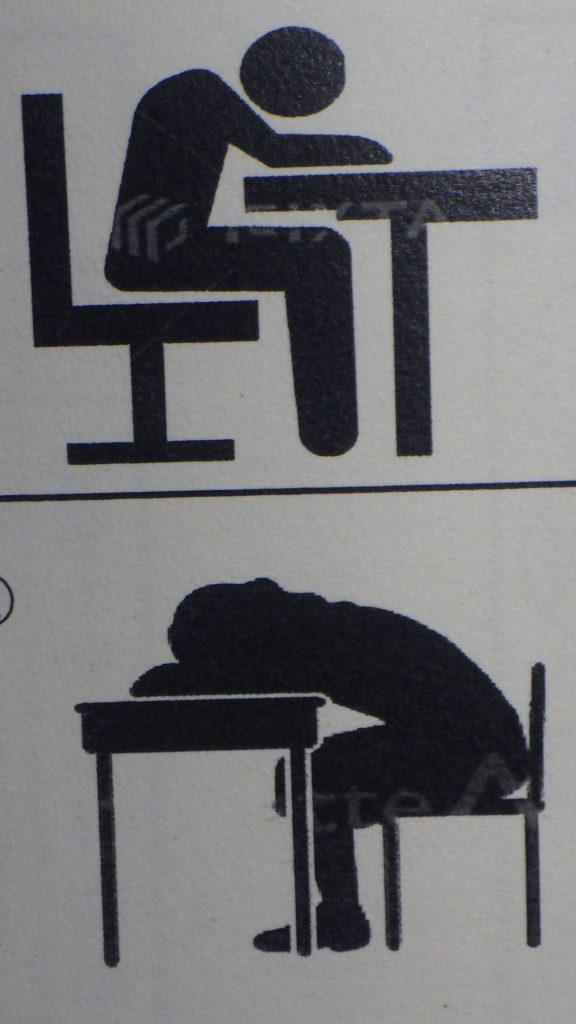 【市の内部資料に記された自席での居眠りの姿勢(ピクトグラム)】