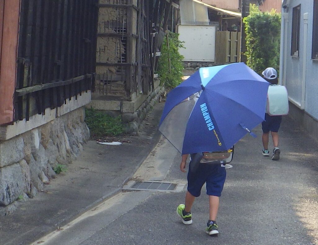 三重県鈴鹿市北長太(きたなご)地区で、市道沿いの空き家が、今にも道路側に倒壊しそうな危険な状態で放置されたままになっている=写真㊤。市は空き家の撤去に向けて法的手続きを取っているものの、撤去の方法や費用を巡って、暗礁に乗り上げている。市は危険性があることを住民に知らせたり、う回路を設けたりしておらず、空き家のすぐ近くを小学生が通学のため通り=写真㊦、車も通行するなど、「いつ重大な事故が起きてもおかしくない」という。関係者が7月1日、「住民の生命を守るため早急に対応を」と訴え、市に現状を説明した。