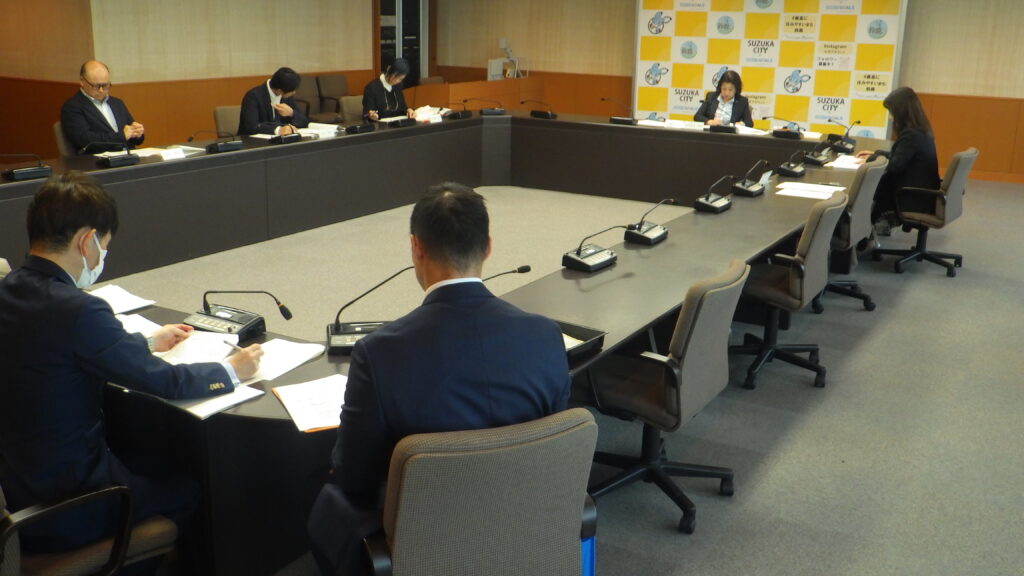 【ボーナスの引き上げの答申をまとめた審議会=鈴鹿市役所6階庁議室】